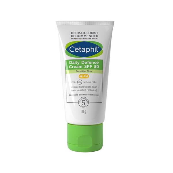 Cetaphil Daily Defence Cream SPF 50 is a lightweight face day cream that provides UVA/UVB protection,